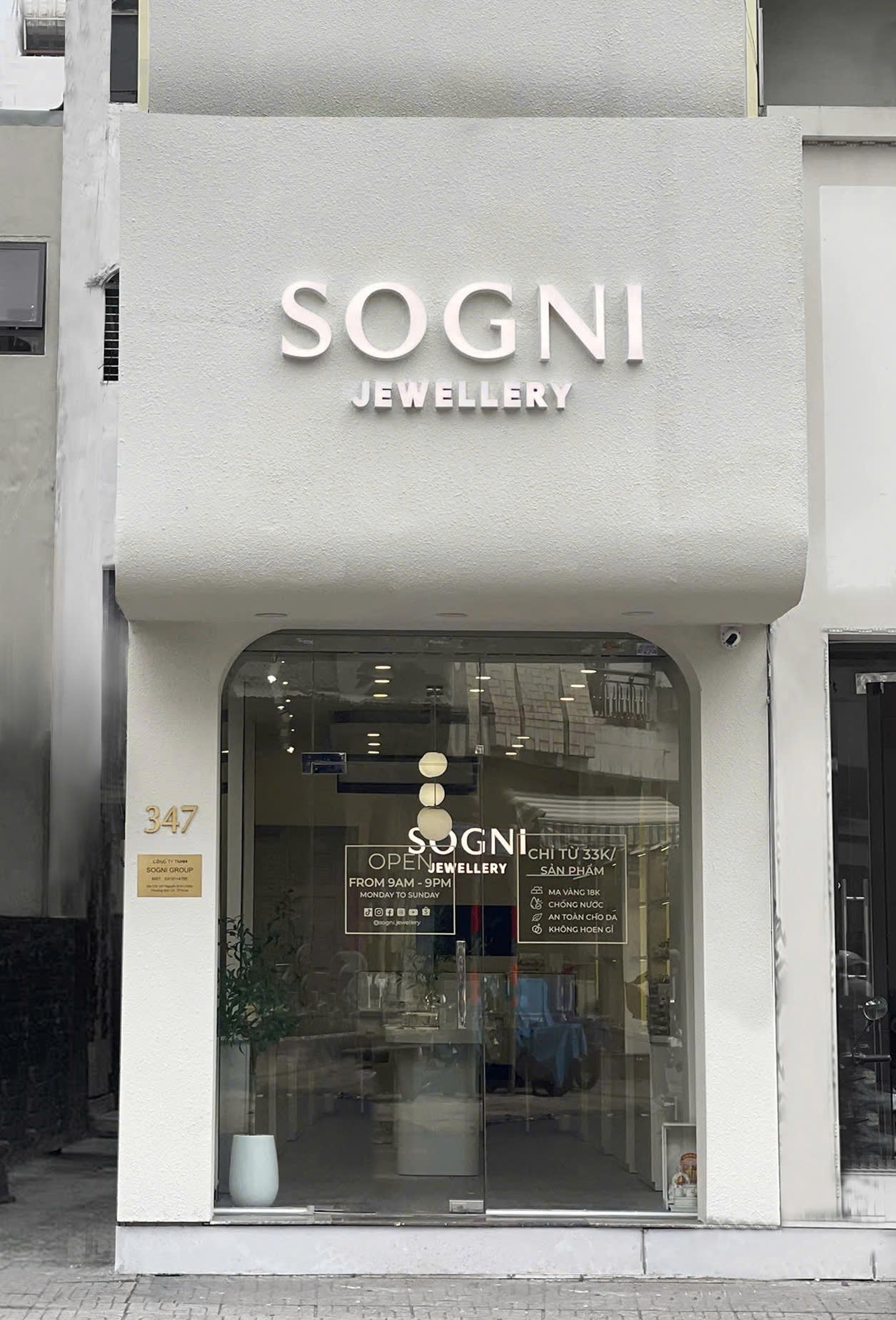 Trang sức SOGNI mạ vàng 18K, chống nước, không hoen gỉ, an toàn cho da.